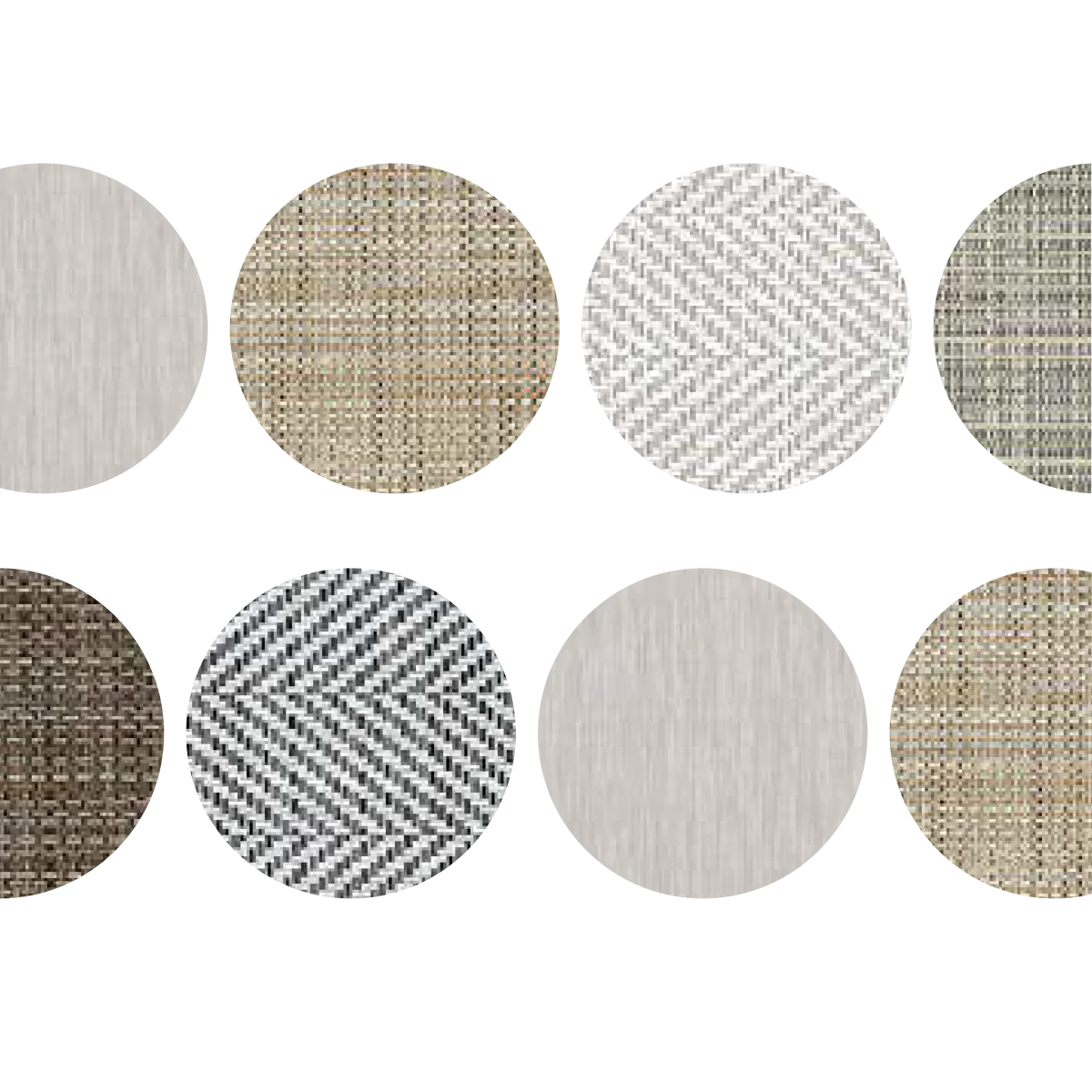 This product, made by a weaving method of weaving PVC yarns one by one into weft and warp yarns, has natural texture and durability unique to fabric.
